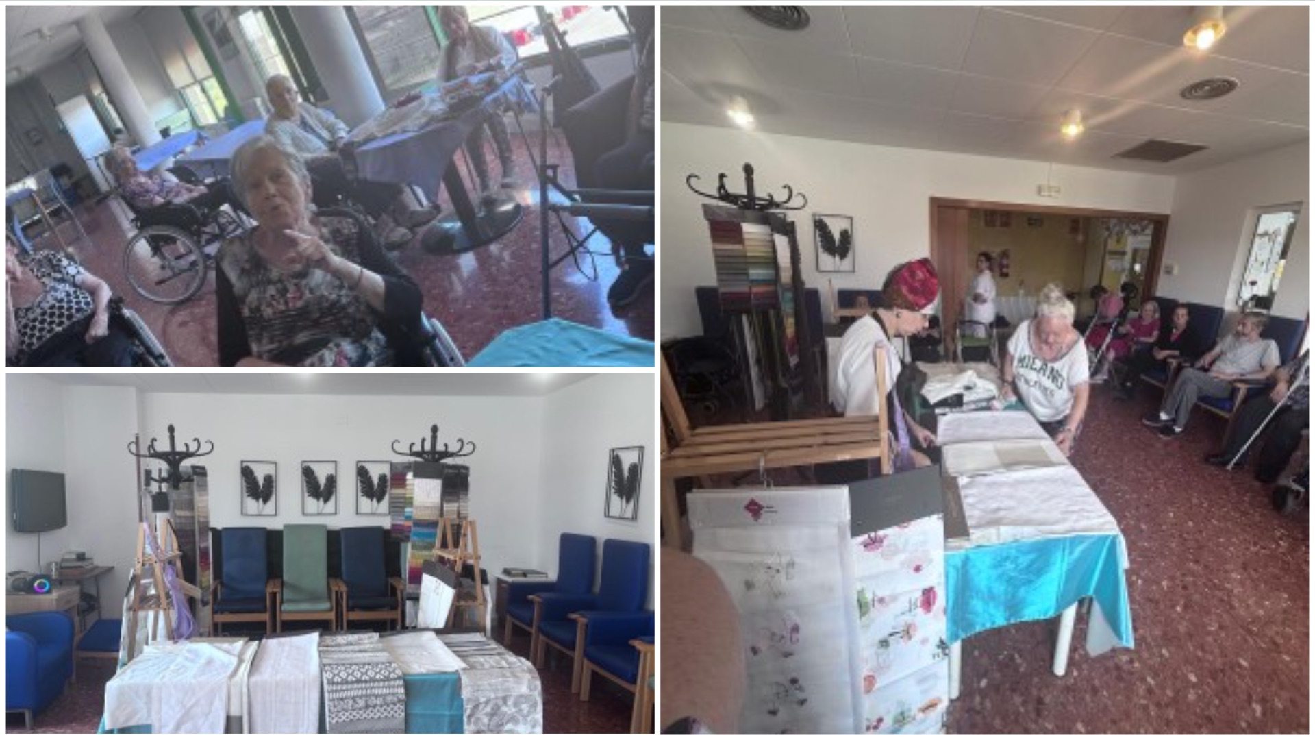 También nos explica que la actividad se estructuró a modo de recreación de un mercado textil, que permitió a las personas participantes interactuar en un escenario familiar para muchas de ellas. A lo largo de la jornada, se instalaron diferentes puestos de mercado repletos de tejidos, ropas y accesorios. Las personas usuarias, guiadas por dos profesionales del centro: la Técnico/a Superior en Animación Sociocultural y la psicóloga, realizaron diferentes tareas relacionadas con la compra y venta, asumiendo los roles que les habían sido asignados.
