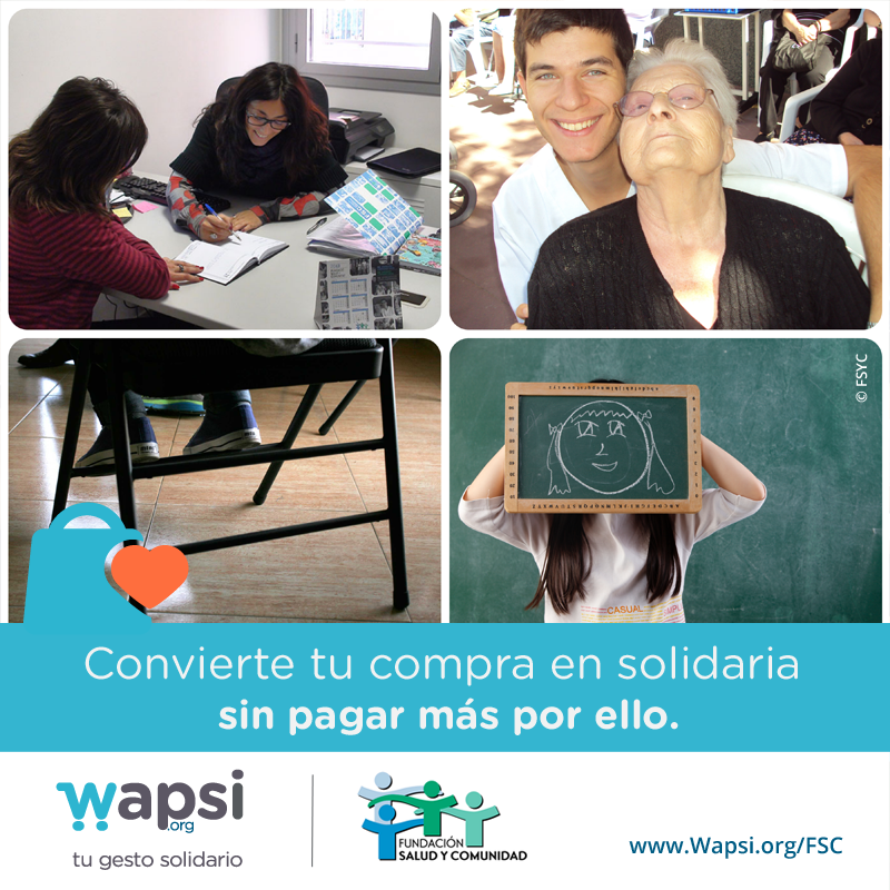La Fundación Equilibrio, amiga de FSC, ha puesto en marcha una nueva plataforma de compras solidarias por Internet a la que ha denominado Wapsi. Recientemente, hemos alcanzado un acuerdo con ellos, por el cual los usuarios/as de esta plataforma, pueden hacer aportaciones a nuestros proyectos sin ningún coste adicional en sus compras.