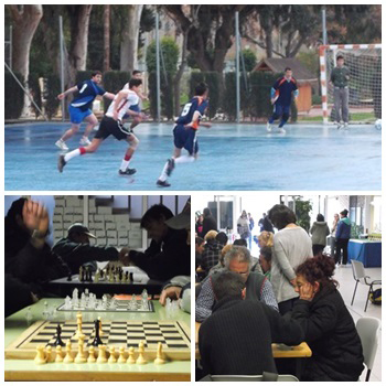 El desarrollo de las jornadas es fácilmente imaginable: antes, varias semanas de elaboración del programa, contacto con entidades, reparto de tareas, previsión de materiales y coordinación de los distintos equipos; la víspera, incertidumbre metereológica y trajín para dejarlo todo a punto; en la mañana: cuatro gotas, todos en sus puestos, acogidas, saludos, inscripciones, competiciones para todos los talentos, fútbol, balonvolea, ping-pong, chinchón, parchís, ajedrez, damas, animación de payasos, eliminatorias, batucada, trofeos, medallas, aplausos, gloria a los vencedores, honor a los vencidos, aperitivo para todos merecido, y, para los residentes y profesionales, comida de gala; por la tarde, recogida, limpieza, sonrisas, cansancio, agujetas; ahora, expectativas de próximos contactos y torneos que permitan la revancha y el reencuentro.