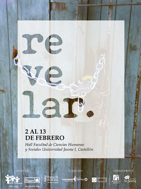 La Facultad de Ciencias Humanas y Sociales de la Universidad Jaume I de Castellón acogió el pasado lunes 2 de febrero, a las 12:00 horas, la presentación de la muestra fotográfica colaborativa ‘Revelar’. Una exposición compuesta por la obra de 6 artistas que participan en un Programa de Atención Socio-sanitaria y Reducción de Daños realizado en el Centro de Intervención de Baja Exigencia (CIBE), dispositivo para drogodependientes de la Fundación Salud y Comunidad (FSC) en Castellón.