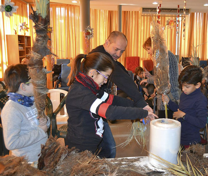 Este taller unió a niños/as, padres y abuelos/as, en un entorno donde el aprendizaje por parte de todos tuvo su mayor protagonismo. Los niños/as convivieron con sus mayores y compartieron una tradición que, poco a poco, vuelve a recuperarse en el municipio de Elche.