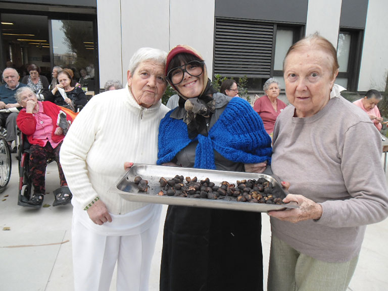 “Aprovechando que el día era formidable, salimos todos juntos al jardín para asar las castañas. Allí, al compás de la música y en compañía de familiares, voluntarios/as y resto de trabajadores del centro, merendamos las castañas y boniatos que habían preparado en la cocina del centro”, comentaba Neus Montoro, coordinadora del Área Psicosocial de la Residencia y Centro de Día “Roger de Llúria” de Reus.
