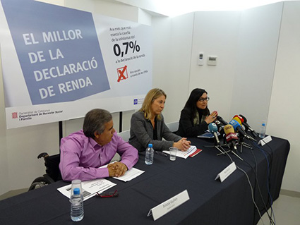 La Consellera de Bienestar Social y Famulia, Neus Munté, y la Presidenta de la Mesa del Tercer Sector, Àngels Guiteras, han hecho hincapié el derecho a la ciudadanía a decidir sobre la destino de una parte de sus impuestos, sobre todo en un momento de crisis que afecta más a los colectivos más desfavorecidos de la sociedad.