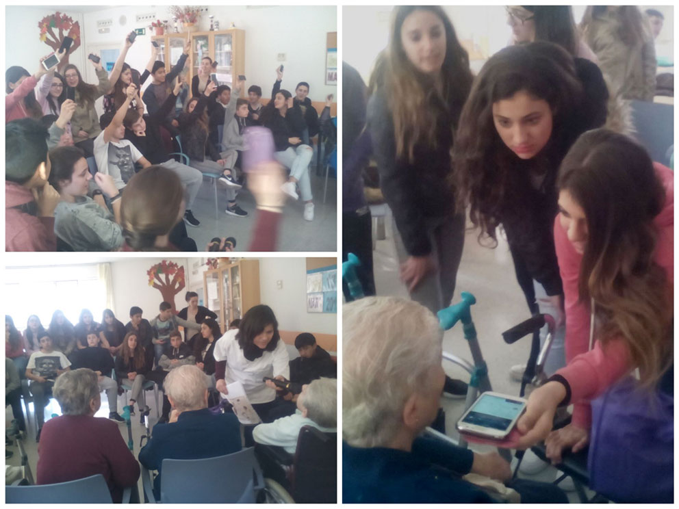 Los mayores dijeron que, cuando ellos tenían la edad de los jóvenes, la manera más habitual de comunicarse era a través de las cartas y que, cuando había que dar una noticia urgente, se utilizaba el telegrama. Por otra parte, explicaron que no todas las casas disponían de teléfono fijo, y que había que ir a Correos para poder llamar. Comentaron, además, la diferencia de forma y tamaño entre los teléfonos de su época y los de ahora, y explicaron a los estudiantes el mecanismo de algunos de ellos, por ejemplo los que tenían rueda parar marcar. Algunos jóvenes se quedaron muy sorprendidos con este sistema.