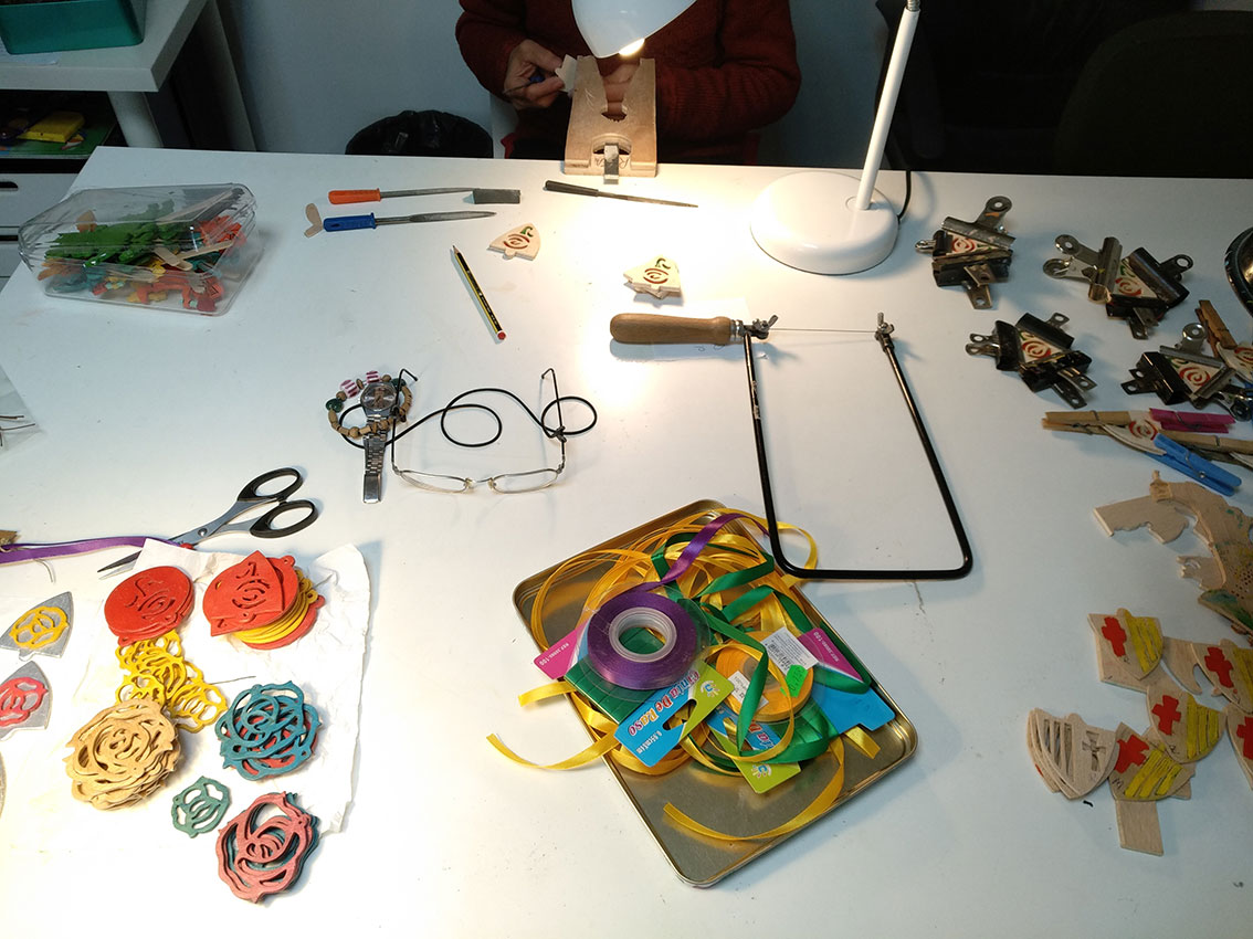 Aquesta activitat per Sant Jordi s’ha convertit ja en una cosa molt nostre, molt característic del centre i usuaris/es, professionals i voluntariat que participa d’una manera o una altra perquè aquesta jornada se segueixi vivint amb gran il·lusió. És, per tant, un reflex de l’esperit del recurs, d’inclusió i de superació, de treball ben fet, d’orgull, de lluita … Els colors vermell, groc, verd, blau, rosa … fan més vistoses les peces i els nous models conviuen amb les nostres roses de fusta de sempre. Es respira en l’ambient alegria, i alhora nervis, com tots els anys dies previs a aquesta data.