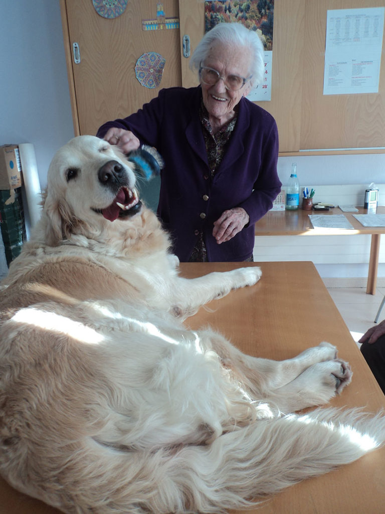 Els animals no jutgem les persones, a nosaltres ens és igual si una persona va en cadira de rodes, li falten dues cames, no pot parlar o sentir, si té 70 o 100 anys d’edat o si pateix la malaltia de Parkinson o Alzheimer . Els animals només volem donar i rebre afecte igual que les persones grans.
