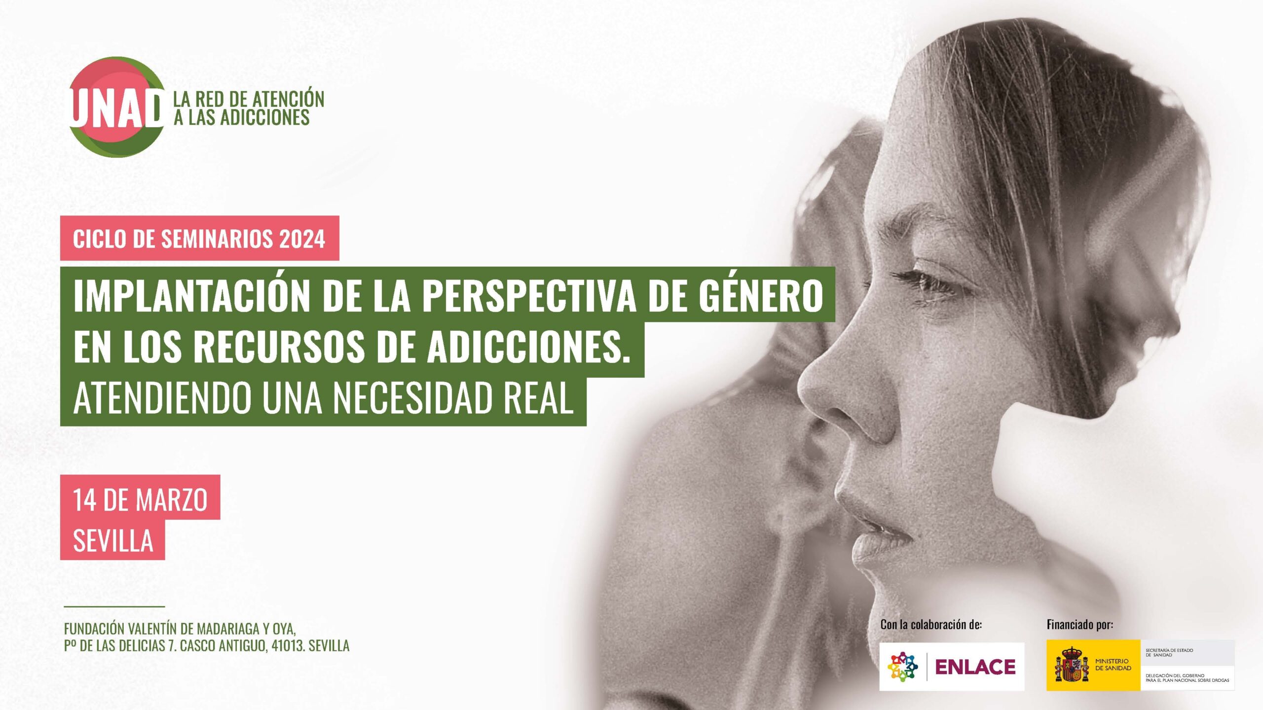 El próximo 14 de marzo tendrá lugar la jornada “Implantación de la perspectiva de género en los recursos de adicciones. Atendiendo a una necesidad real”, organizada por UNAD, la Red de Atención a las Adicciones. Este seminario, a celebrar en Sevilla, supone la primera cita dentro de su programa de eventos formativos, previsto en distintos lugares de la geografía española a lo largo de este año. El evento, impulsado desde la Comisión de Adicciones y Género de UNAD, en la que participamos desde la Fundación Salud y Comunidad (FSC), está financiado por la Delegación del Gobierno para el Plan Nacional sobre Drogas (PNSD).