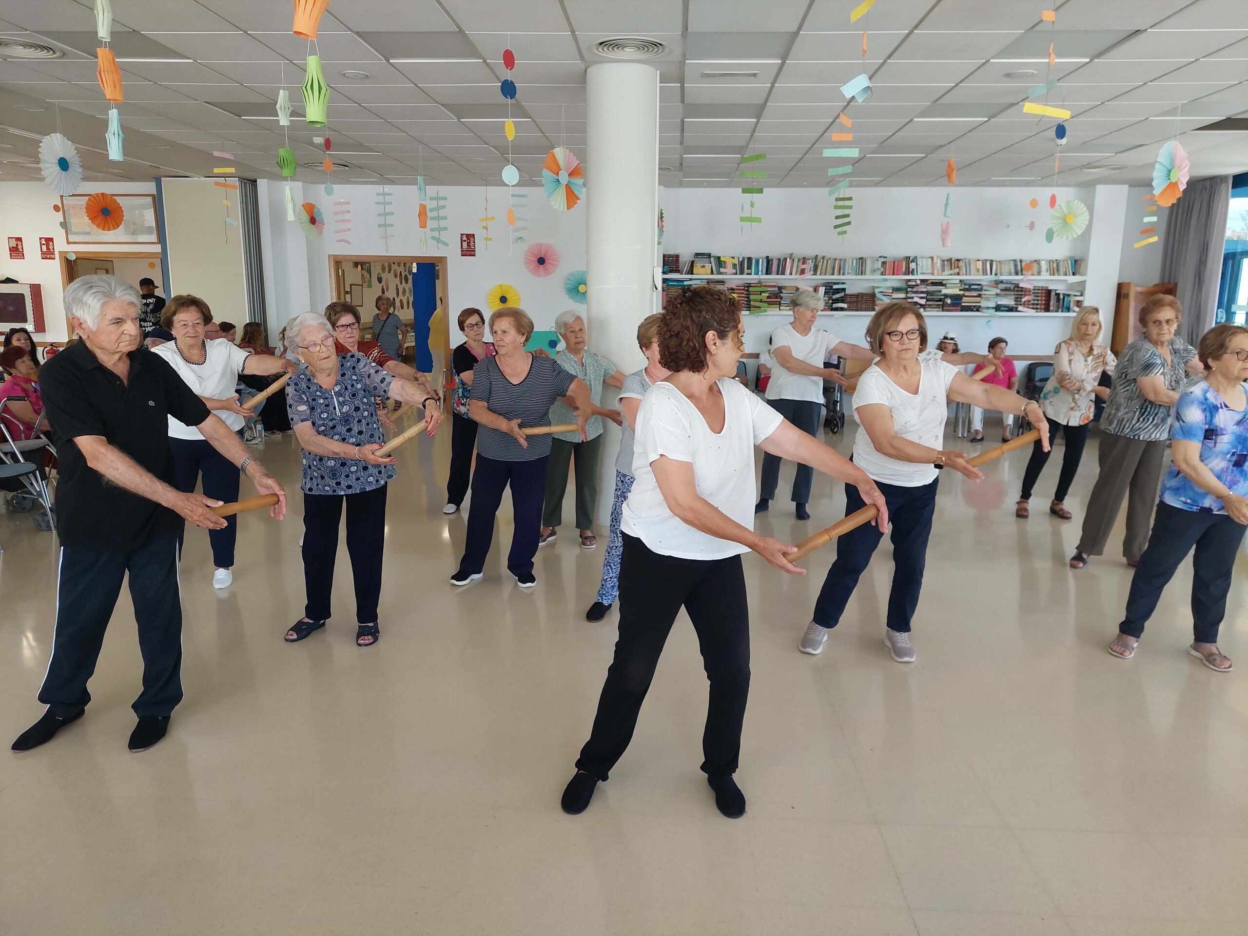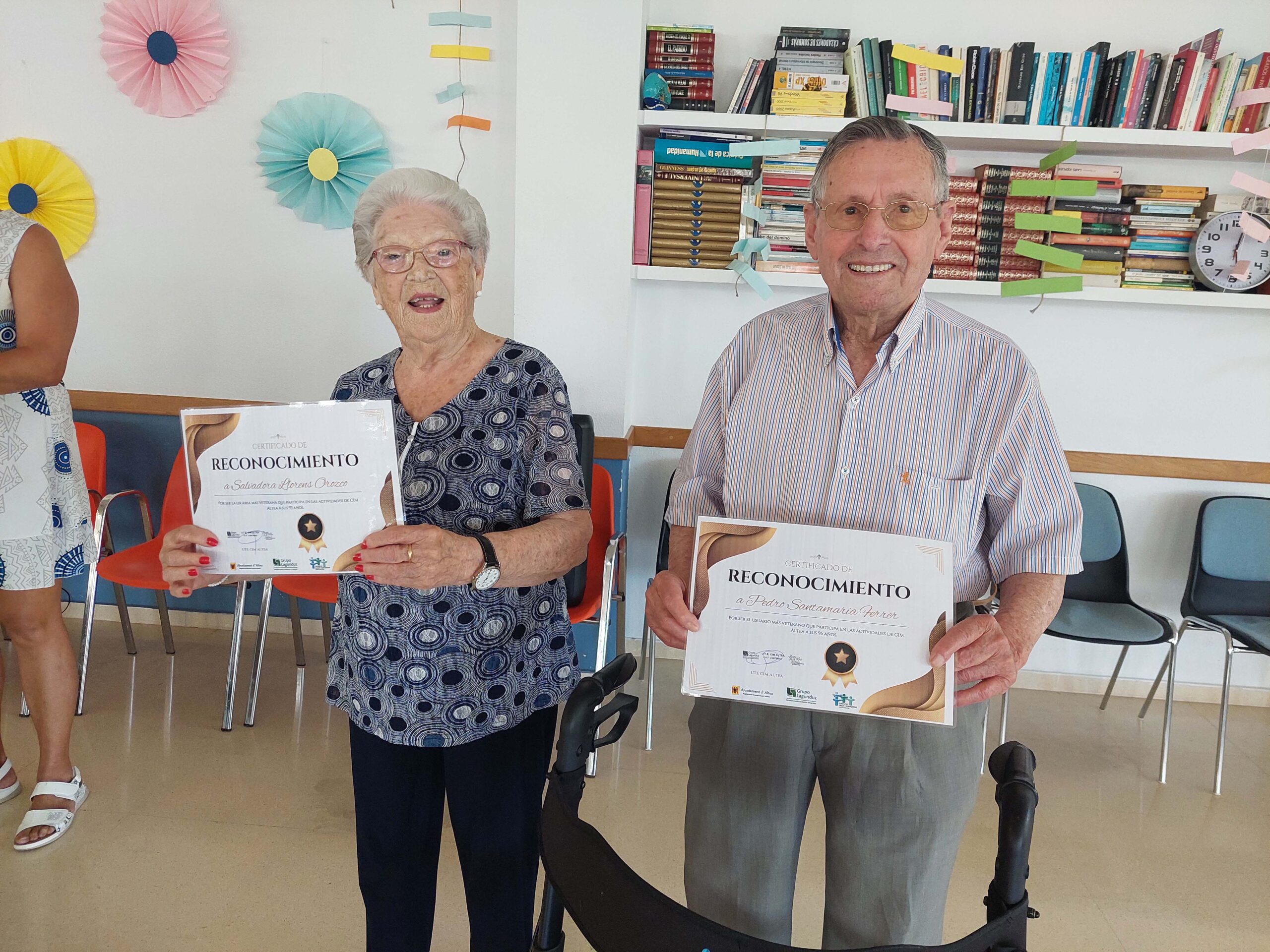 Tras la actividad de gimnasia adaptada, se siguió con la exposición del taller de taichí, aprovechando su finalización para hacer un homenaje “fuera de programa” a la usuaria Salvadora Llorens Orozco (alumna de taichí), de 93 años, y al usuario del servicio de fisioterapia Pedro Santamaría, de 96 años “al ser los más veteranos este año en el CIM. Se emocionaron mucho, ya que no sabían nada. Para ello, nos compinchamos previamente con sus familiares”, confiesan desde el servicio.