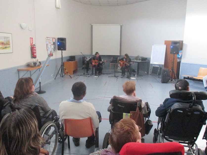 Con los cambios de ritmo que introdujeron ambos artistas en su repertorio, lograron emocionar a usuarios/as, familiares y equipo profesional de este servicio con una actuación con ritmos diferentes a las actuaciones más tradicionales a las que están acostumbrados.