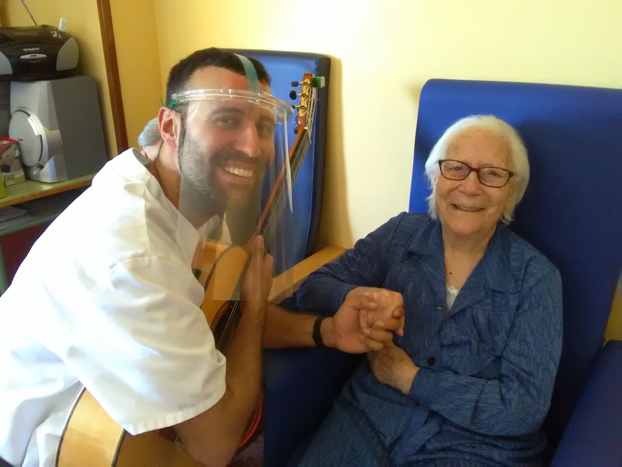 La directora de este centro, Maleni Cisneros, nos cuenta que «han sido unos meses muy duros, pero gracias a Víctor García, musicoterapeuta, y a este proyecto, las personas mayores han cantado, han bailado… hemos observado reacciones de mayores con la música que nos han sorprendido gratamente, echaremos de menos a Víctor“.