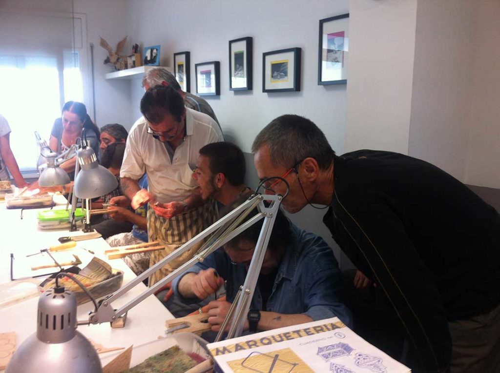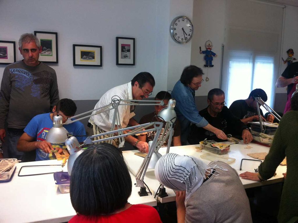 Els integrants del club, després de serrar les peces necessàries, van ser ensenyant les diferents tècniques per llimar, polir, polir, pintar, envernissar i, finalment, enganxar totes les peces fins aconseguir el logotip que buscaven.