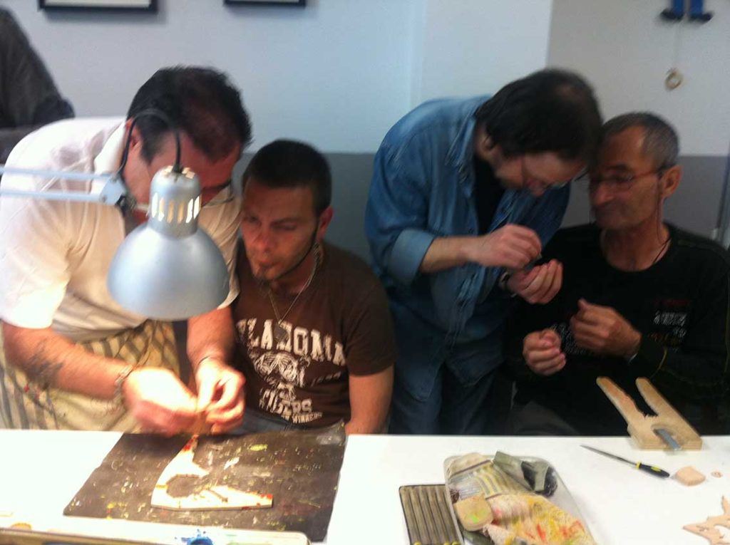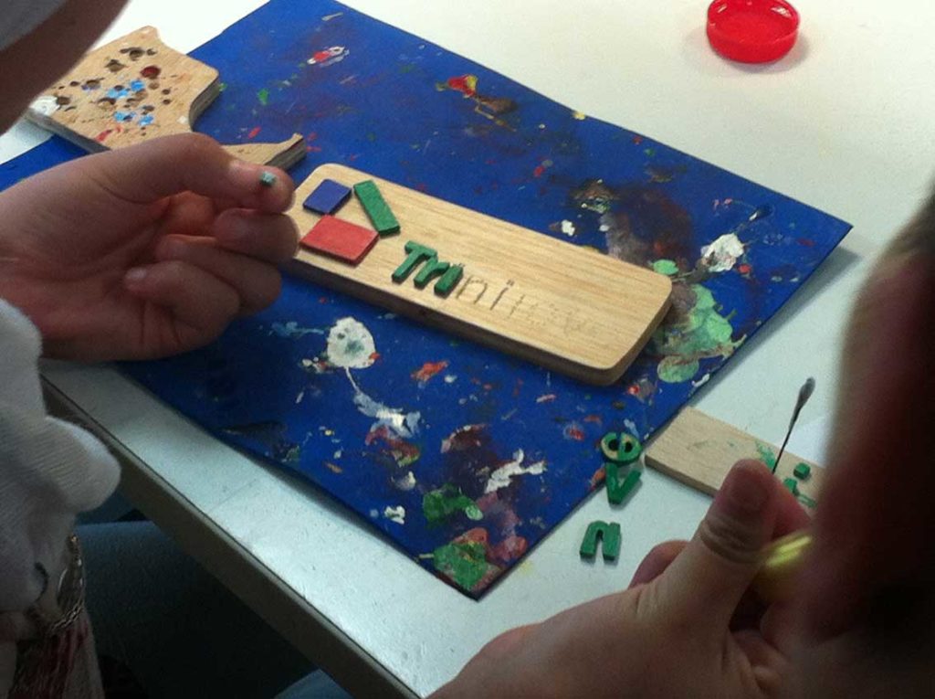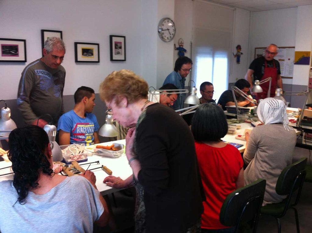 L'objectiu d'aquest taller era realitzar un logotip de fusta per a la Fundació Trinijove i cada membre del club va actuar de mestre de cada integrant del Taller d'Arts Plàstiques, creant-se un ambient de cooperació que va superar les expectatives inicials.