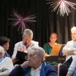 Un cop a la sala, els assistents van gaudir de l'actuació de la formació artística "Aires del Sud". En un dels números, van participar diversos residents acompanyant amb palmes la bona feina de les ballarines en un quadre flamenc.