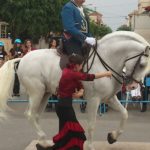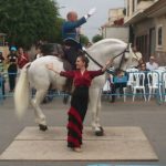 La tarda va començar amb una exhibició de cavalls a l'exterior del centre a càrrec d'Espectacles eqüestres JJ, procedents de dues quadres oriolanes, de Joan Mateu i Joaquim Soler, regalant imatges especialment belles als assistents. Els cavalls i els seus genets no van defraudar al públic ballant al so de la música, bé de forma individual o acompanyats per la ballarina Bàrbara Rodríguez, tot i l'amenaça de pluja que planava sobre el cel de Benejúzar hores prèvies a la celebració.