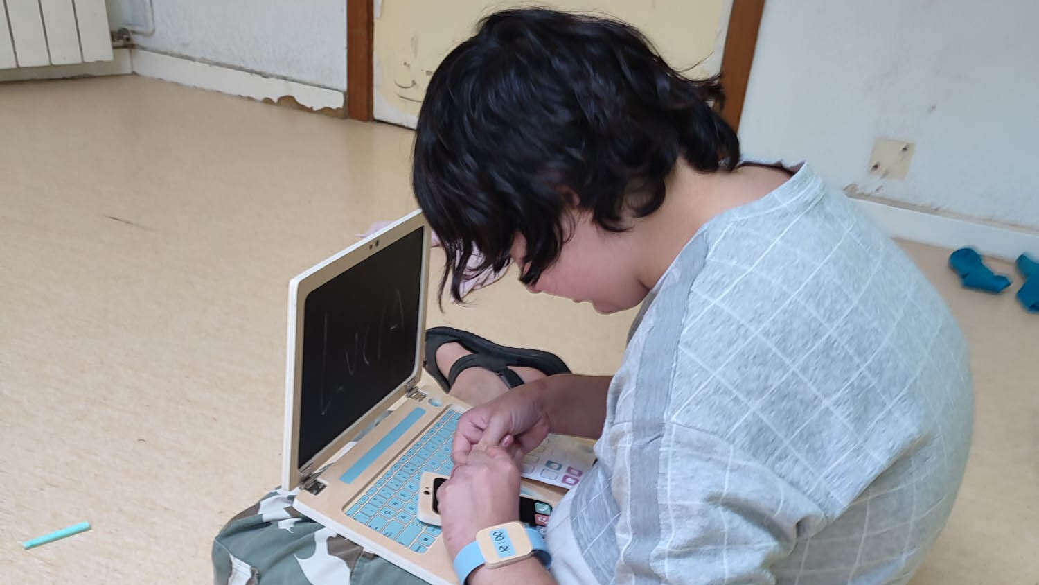 Una niña, a la que le encanta escribir, ver la hora y jugar a hablar por teléfono, le pidió al Rey Melchor un ordenador/pizarra, un reloj/pizarra y un teléfono móvil/pizarra que recibió con mucha ilusión. Sabemos que dedicó tiempo a escribir en su ordenador los nombres de todos sus compañeros y compañeras.