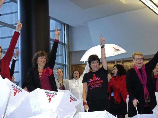 Tras la presentación de la coreografía, que llevaba por nombre «One Billion Rising», la vicepresidenta del Parlamento Europeo, la ecologista belga Isabelle Durant, señaló que la situación es «inaceptable», motivo por el que reclamó a todos los europeos decir «no» para condenar la violencia contra mujeres y niñas.